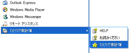 ●Windowsの「スタート」ボタンを押し、「プログラム」「ひとりで家計簿」と選択し
