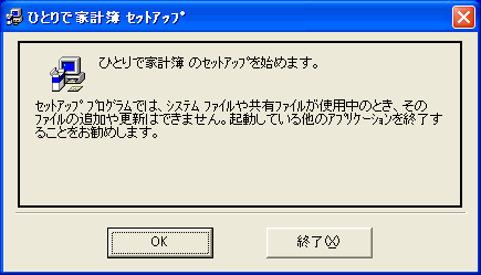 ・「ひとりで家計簿」をご試用になるには、まず「ひとりで家計簿」のプログラムを