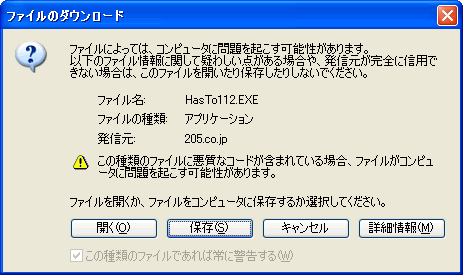 ●すぐに書き換え用ファイルのHasTo113.EXEのダウンロードが開始されます。